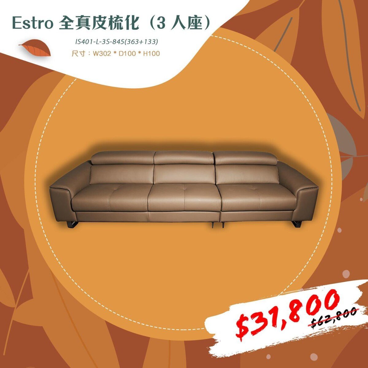 Estro 全真皮梳化(3 人座)